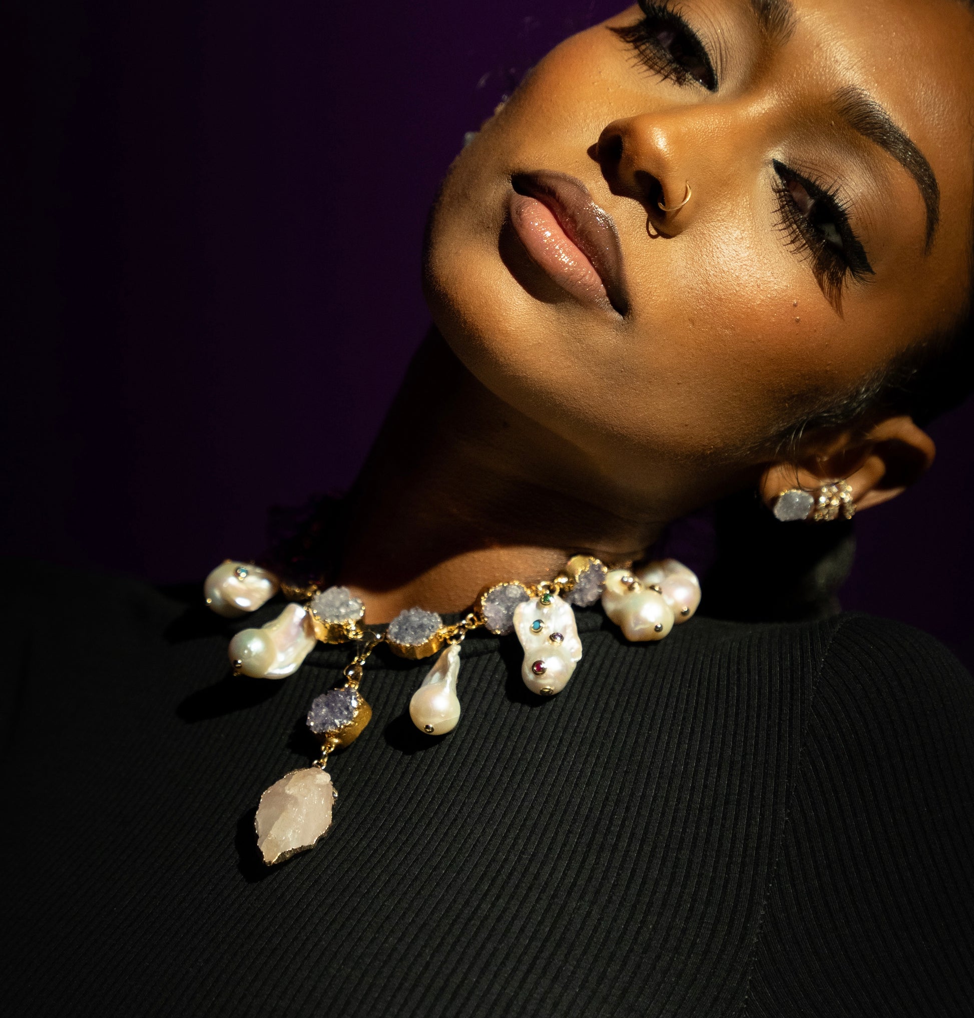 Discover the beauty of the ocean with our AQUA PEARL NECKLACE. Made with large fresh water pearls, amethyst, and rose quartz, this necklace is a stunning representation of the sea. Bring a touch of elegance and inspiration to your wardrobe with this unique piece.